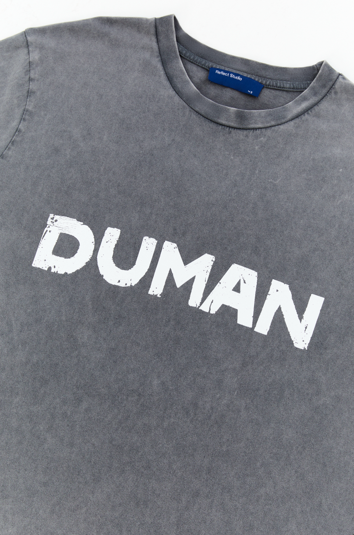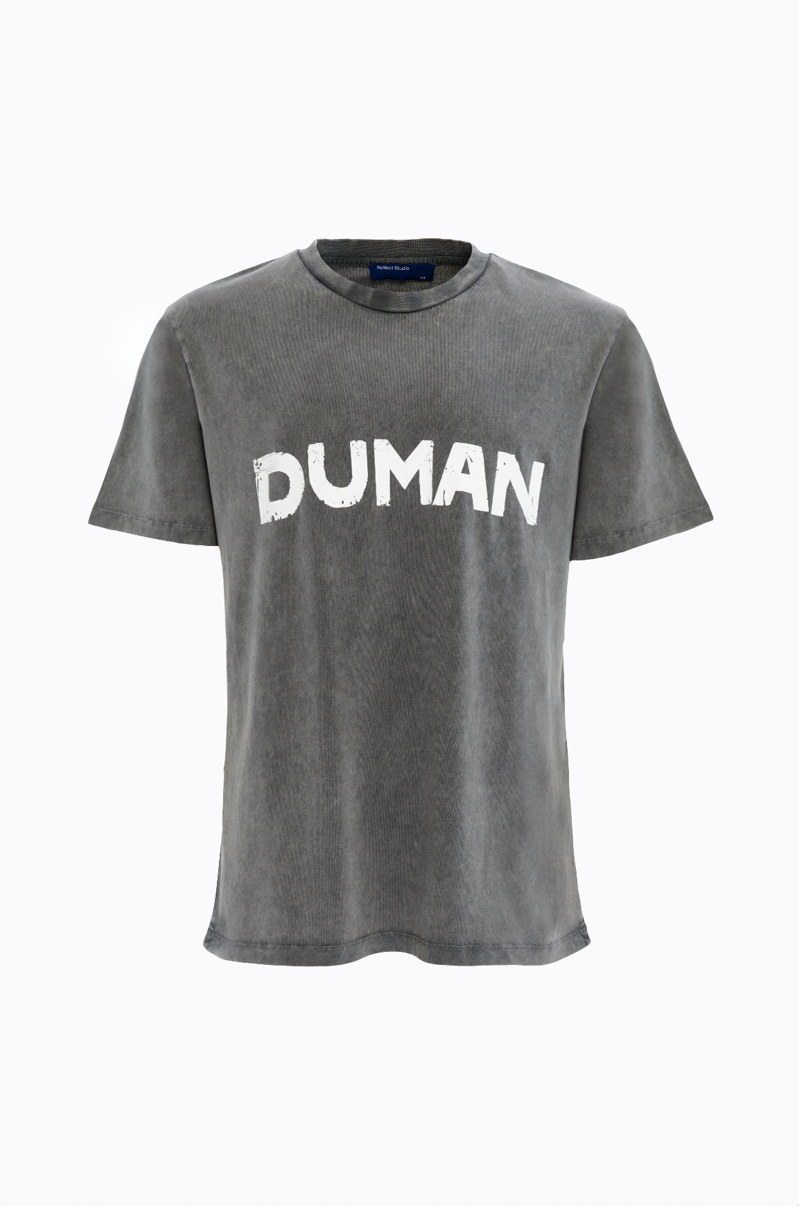 %100 pamuk premium yıkanmış kumaş, 200 GSM heavyweight, antrasit gri renk, ön-arka baskılı, özel kalıp oversized t-shirt.